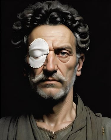 Maestro griego nacido en Alejandría hacia el año 70 a.C. y, por razones del destino, afincado en las poblaciones de Arégrada y Augustóbriga desde que fue liberado de su esclavitud en el año 14 d.C. Esclavo de nacimiento, era hijo bastardo del judío Demetrio de Heliópolis. Desde joven, su padre lo introdujo como alumno en la Biblioteca de Alejandría. Ha sido maestro de Agripina de Arégrada y de sus padres, Marco Lucilio y Aunia